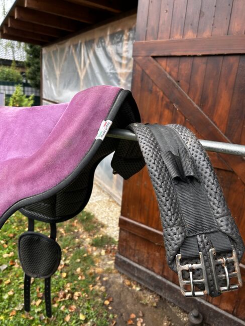 Brockamp Riding Pad - Säljer denna riddyna i varmblodsstorlek. Anatomisk passform, övermaterial mocka i en härlig färg. Undersida med halkskyddande gummi/neopren. Riddynan är i gott skick, spännena är intakta. Gördel ingår. Nypris var 220€. Mått: Rygglängd ca 56 cm, sidolängd ca 48 cm Kort omkretslängd ca. 56cm