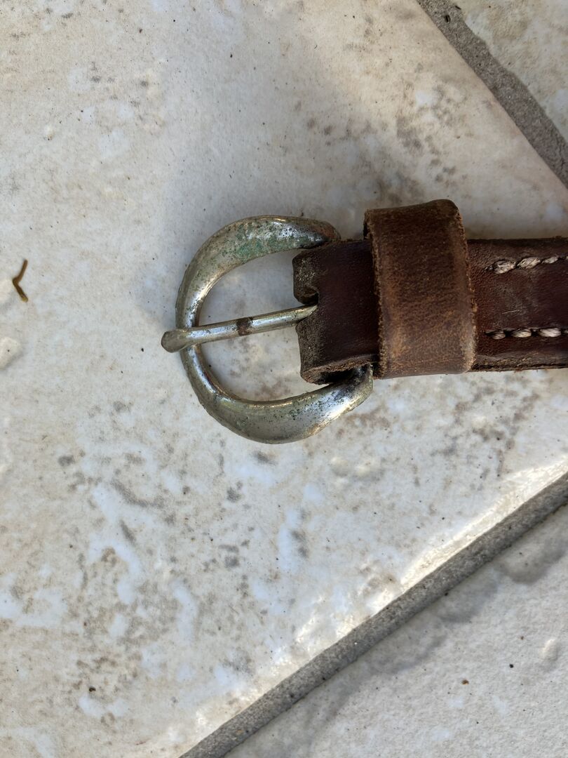 Bröstplatta/martingal i läder - Här är ett gammalt sadelkammarfynd - tyvärr finns det rost på ringarna och lite lädervård kommer att få bröstplåten att skina igen 😀! I övrigt fullt funktionell!