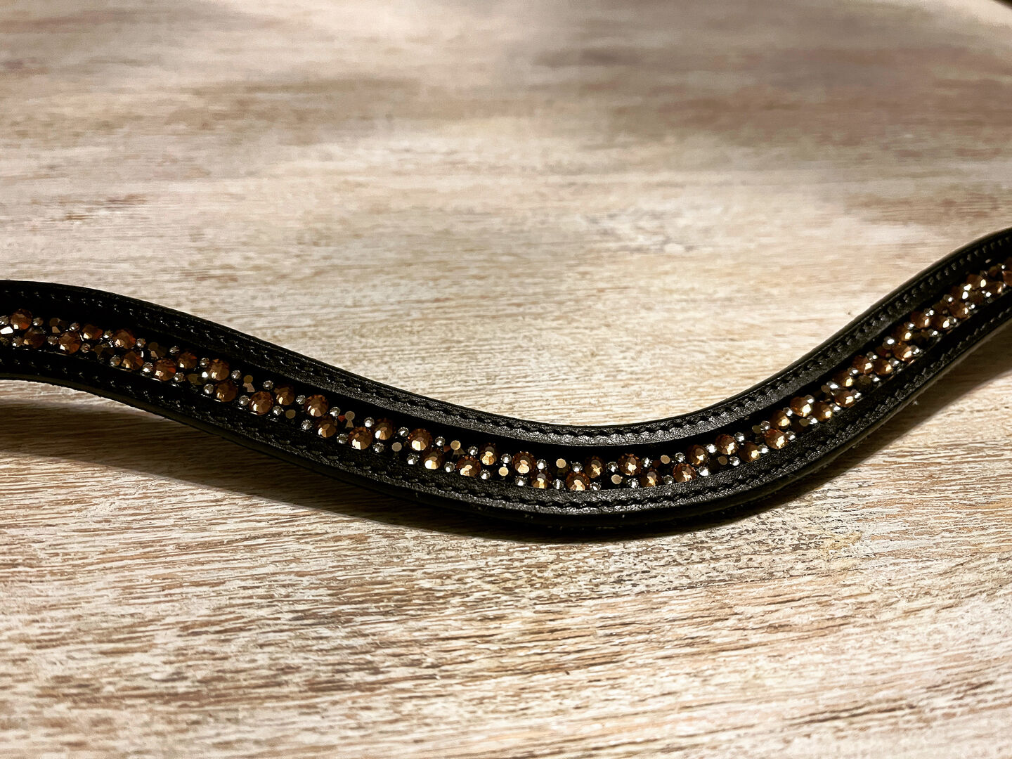 I den här versionen är kristallerna limmade direkt på pannbandet i läder.