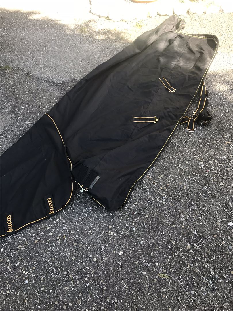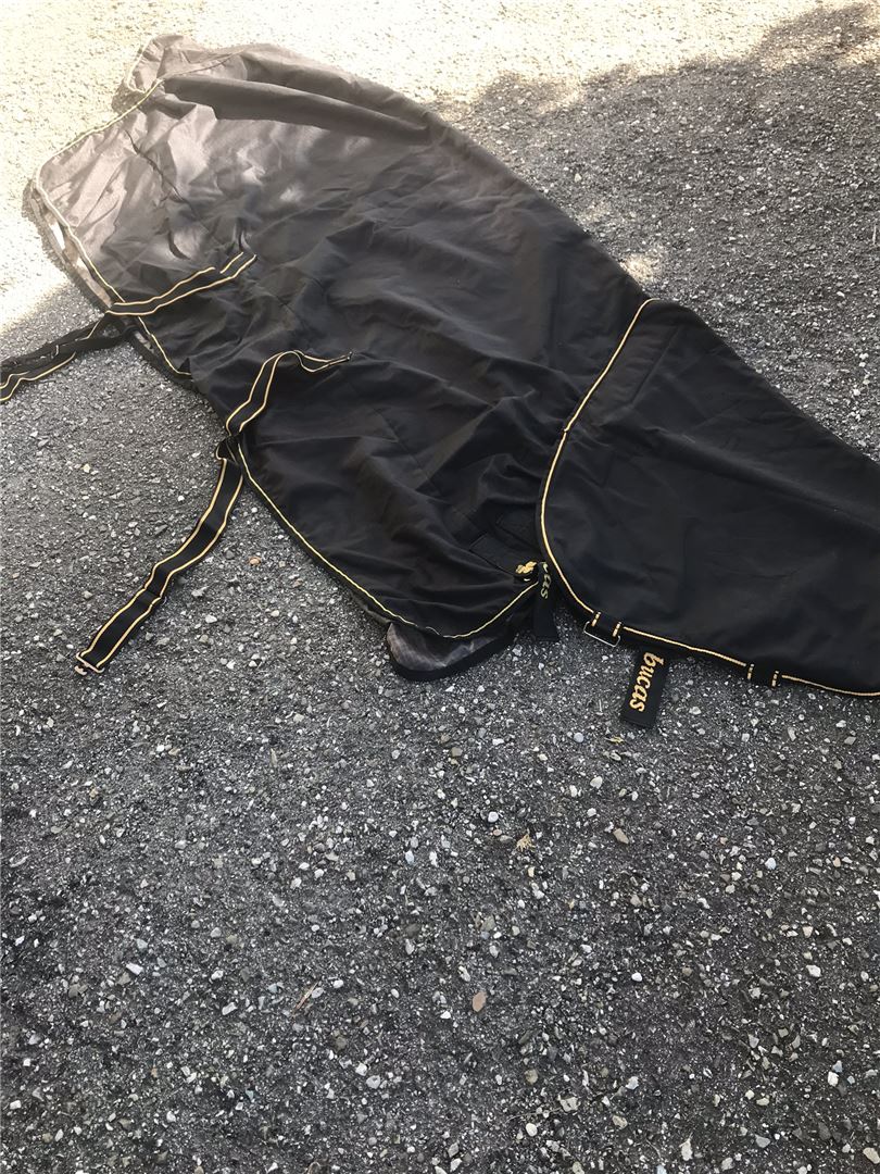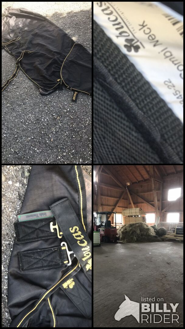 Bucas Irish Turnout i storlek 145 inkl. avtagbar nackdel. Täcket har varit på hästen några gånger, har inga fläckar, tårar eller hål. Halsstycket har använts en gång. Täcket är nytvättat och vattentätt. Täcket säljs endast med halsstycke.