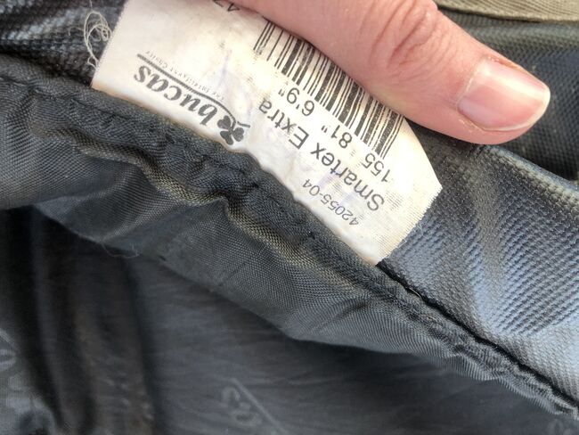 Hästen har trampat på den längst ner på den nedre gummikanten, där materialet har sträckts ut (se foto).