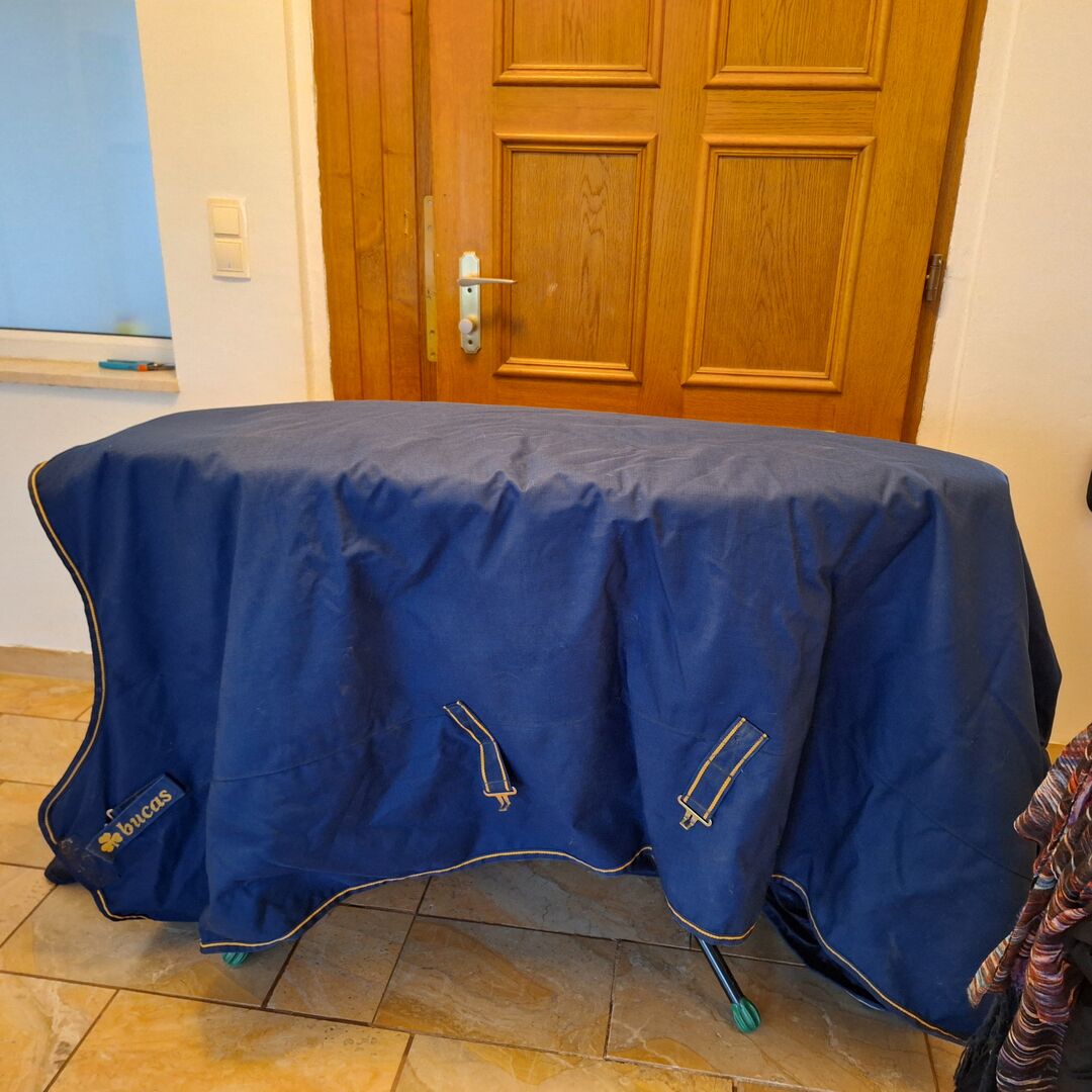 Bucas utomhusmatta 165cm 300g - Hej, jag säljer en tjock utomhusmatta från Bucas (165cm, 300g tjock). Den har tvättats och är i mycket gott begagnat skick. Plocka upp i 61130 Nidderau eller plus fraktkostnader frakt är möjlig.
