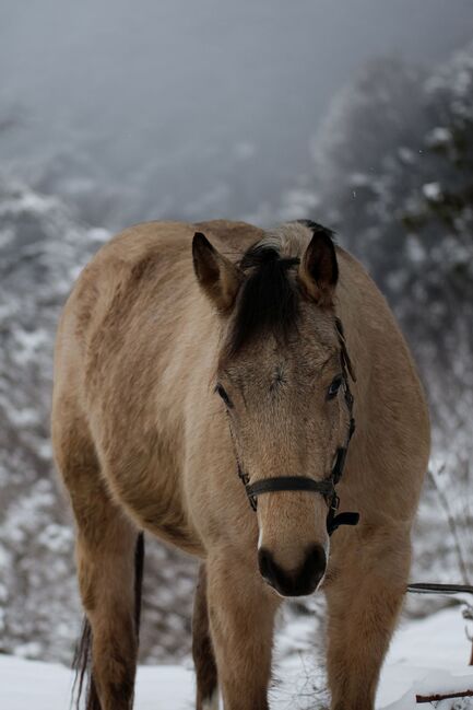 Buckskin Quarter Horse-valack med toppstamtavla för reining - TJ Sparkn Mobster, född 02.05.2023, är en buckskinfärgad Quarter Horse-valack med en beräknad sluthöjd på ca 148 cm. Han är ett absolut blickfång, korrekt byggd, kompakt och välmusklad. Med sin förstklassiga reiningstamtavla (Spooks Gotta Spark x HF Mobster) kombinerar han prestationsvilja och disposition på ett mycket intressant sätt och erbjuder de bästa förutsättningarna för en sportig framtid. Casey växte upp i en artanpassad flock, kan både stall- och beteshantering och fick vara ung i fred. Han känner sin veterinär och hovslagare, avmaskas regelbundet och är även 5-panel n/n. Denna valack är väluppfostrad, sällskaplig, lugn och känslig. Han är ärlig och uppmärksam mot sina människor, men är ganska reserverad och behöver en lugn, självsäker vårdare som ger honom en känsla av säkerhet och uppmuntrar honom rättvist och tålmodigt. Casey är regelbundet hanterad, haltertränad, rå och har bra grundläggande gångarter. Han kommer snart att gå i träning och har de bästa förutsättningarna för ett gediget, långsiktigt stöd. Han är idealisk för någon som tycker om att noggrant bygga upp en ung häst och utveckla ett förtroendefullt partnerskap. Han kommer endast att säljas till goda, stödjande händer.
