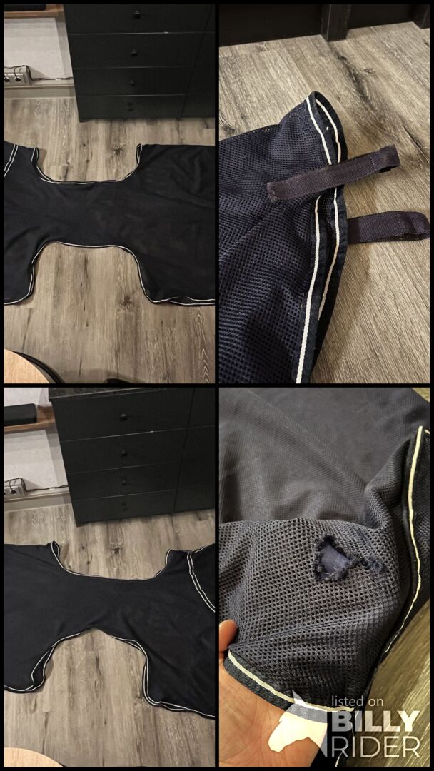Busse flugridningsmatta Engelsk flugmatta med halssektion 165 - Till salu här finns en begagnad men i gott skick flugmatta från Busse. Den är lämplig för engelska sadlar. I vilket fall som helst passar sadlar med 18" sits under, eftersom jag själv har 18" sadlar. Jag har använt den i två somrar, men behöver den inte längre. Mattan har bara ett litet hål vid svansluckan, men det spelar ingen roll eftersom tyget är underliggande här. Jag kan dock laga det i förväg om det skulle behövas. Täcket har också ett integrerat nackstycke, som också kan fästas på huvudstycket på tränset för att förhindra att nackstycket glider. Färgen på mattan är mörkblå.