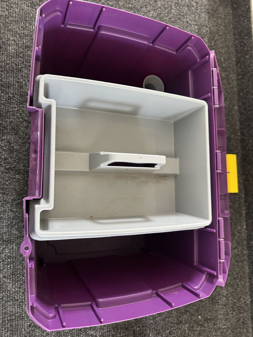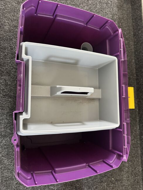 Busse groomingbox i lila med gult fästelement och groomingkit - Säljer min Busse grooming box i vacker lila med gult fästelement.