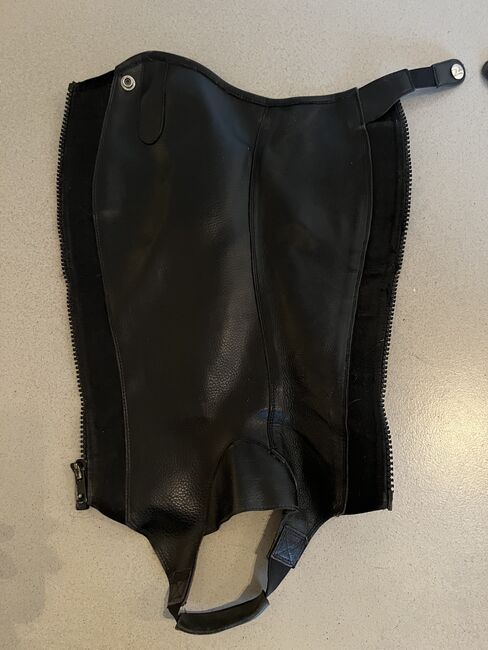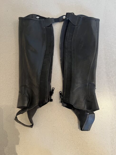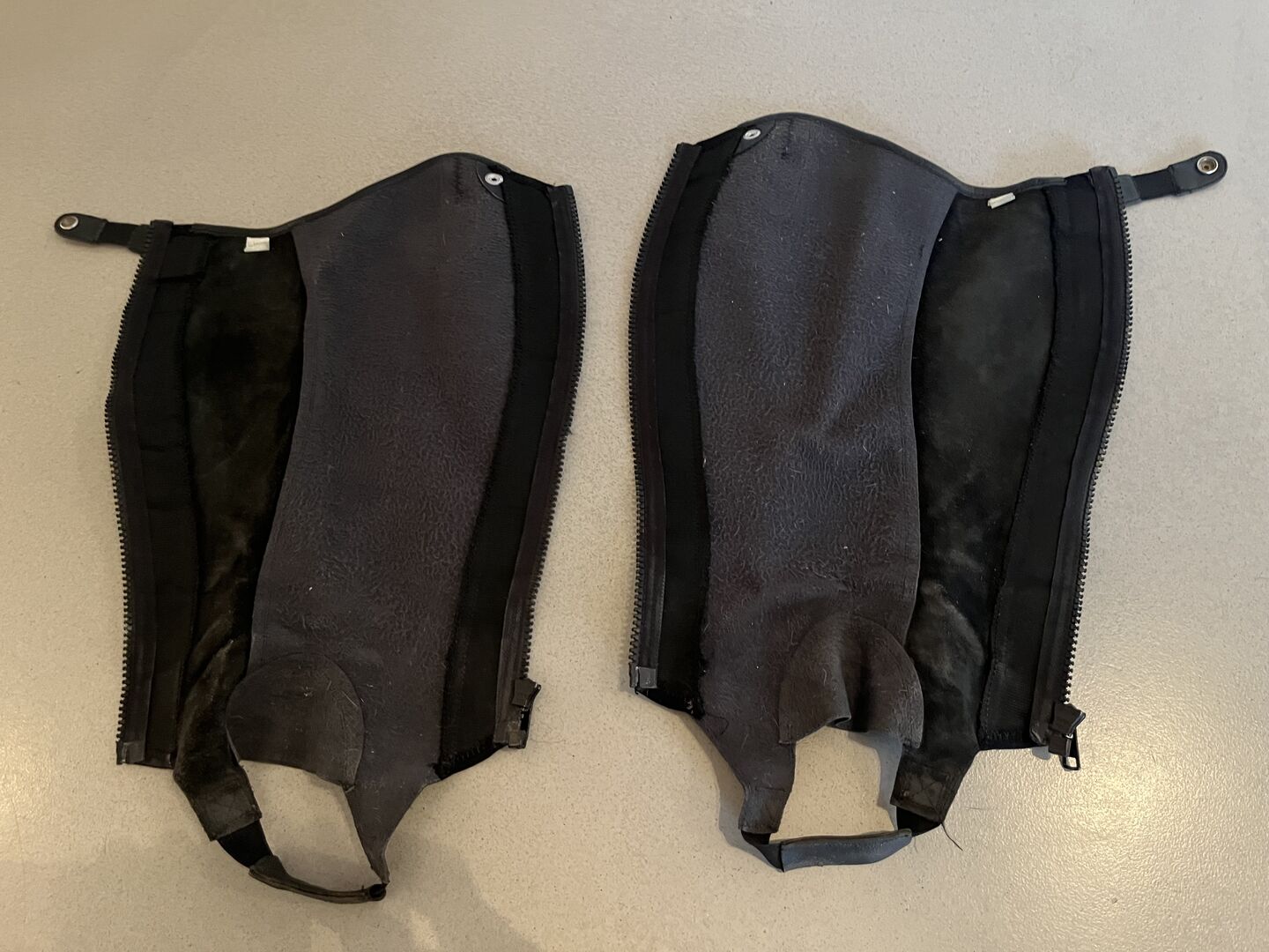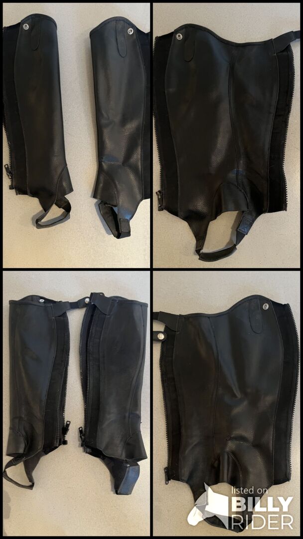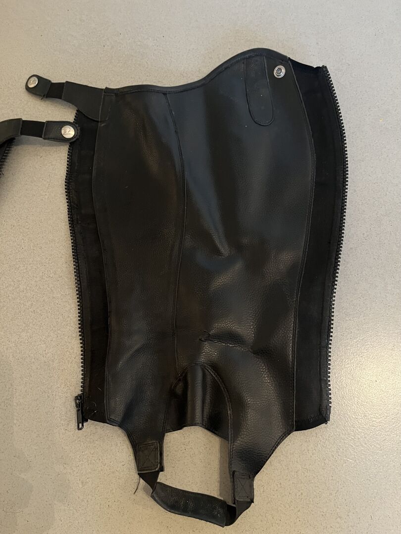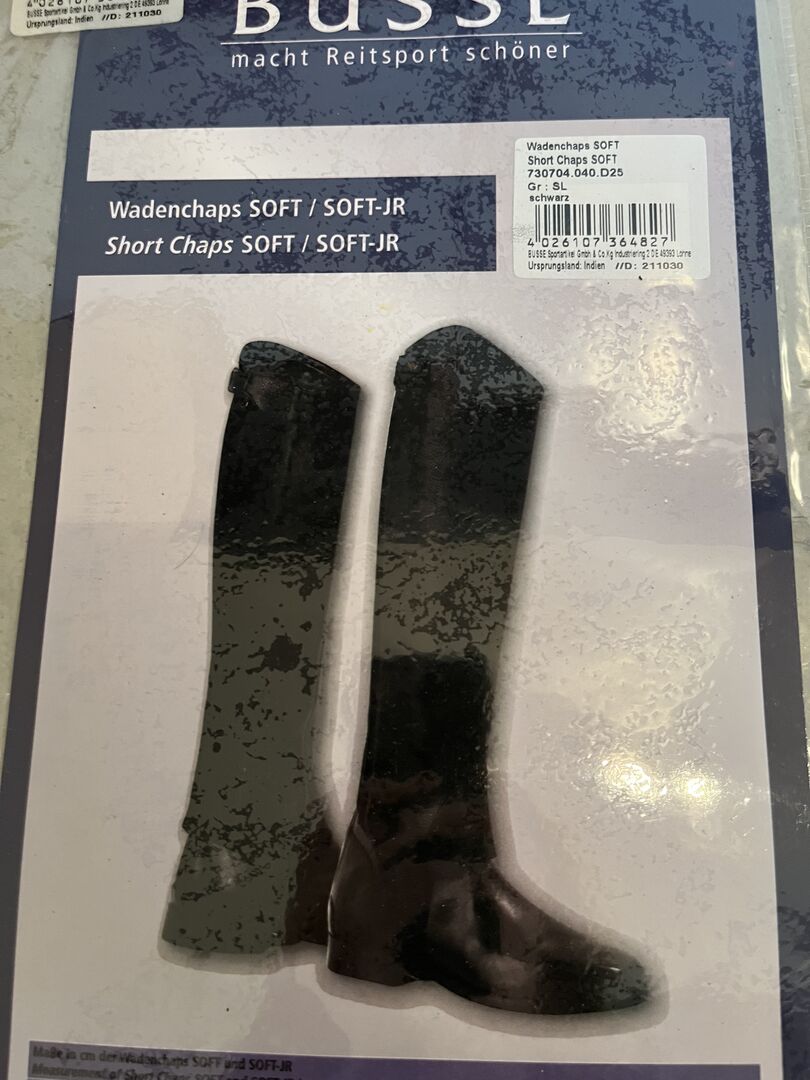 BUSSE kalvchaps Soft gr.SL i svart - Jag säljer dessa läderchaps från Busse i storlek SL längd: 45cm, bredd: 33-37cm De har regelbundet smörjts och behandlats med omsorg och är i gott skick. Som framgår av bilden har den vänstra chapen en liten reva på ett ställe, som knappt syns när den bärs. Originalförpackningen finns kvar och skickas med kängorna. Ursprungligt pris:59€.