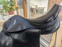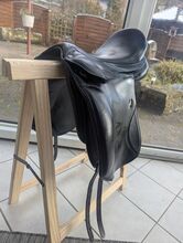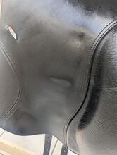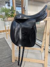 Busse Solibel Cadiz dressyrsadel 17,5 - Jag säljer min Busse Solibel Cadiz dressyrsadel i storlek 17,5, som för närvarande har en blå kotlettplatta (ska vara storlek 28), men som också levereras med en röd kotlettplatta för att ändra kammarens bredd (storlek 26).