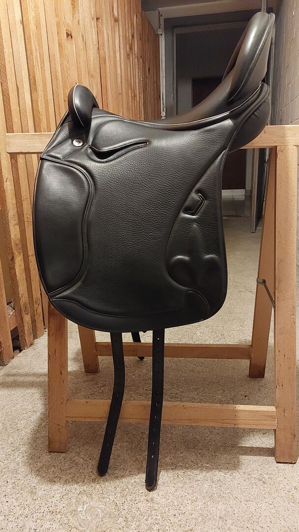 Butterfly "Barock" sadel - Till salu så gott som ny sadel från Butterfly. Det är modellen "Baroque". Dressyrbarock sadel (kohud), halvdjup sits. Justerbara knärullar. Butterfly® erbjuder enorm axel- och mankhöjdsfrihet och undviker smärtsamma tryckpunkter på trapeziusmuskeln. Butterfly®-sadeln har ett revolutionerande sadelbomsystem som anpassar sig till de flesta hästar, oavsett ras och kroppsbyggnad. Alltid och i varje rörelse! Den är mycket bekväm att sitta i. Färg: svart Sittlängd: 18"