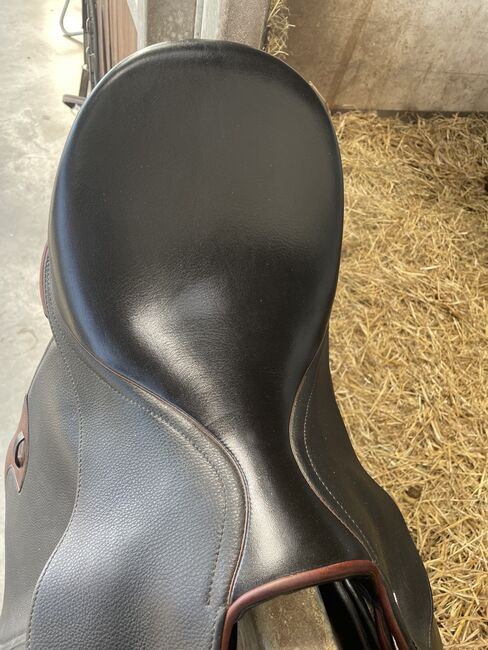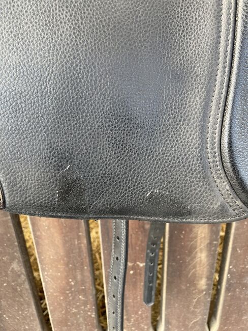 18 tum djup sits, även för långa ben, redo för omedelbar användning. Köptes i andra hand av mig själv (augusti 2022), när sadeln just hade kontrollerats (bevis tillgängligt på begäran). Används sedan dess endast sporadiskt (för inkörning), sedan oktober 2024 har den bara hängt i garderoben hemma. Några fläckar på sadelklaffarna, i övrigt i toppskick.