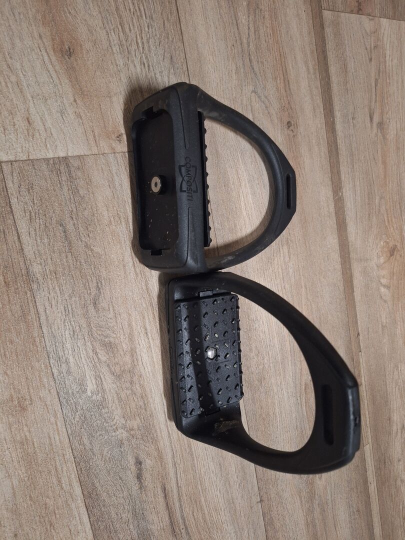 Bygelkomposit - Till salu: Compositi Flex stigbyglar med en stor, flexibel halkfri slitbana av hårdplast. Detta gör att ryttaren kan stå bättre och har samtidigt en behaglig stötdämpande effekt som avlastar leder och muskler.