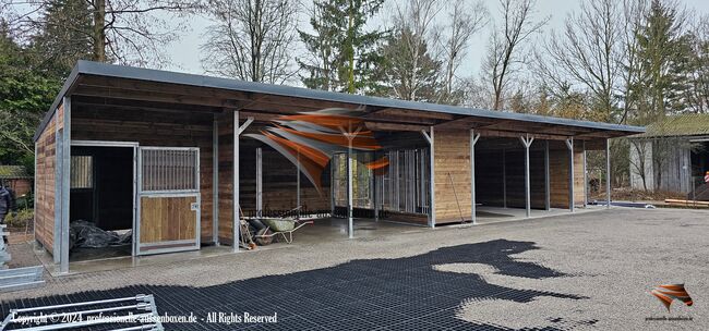 Bygg häststall - Köp stall utomhus, hästbox & öppet stall - Lekhage - Webb: www.professionelle-aussenboxen.de