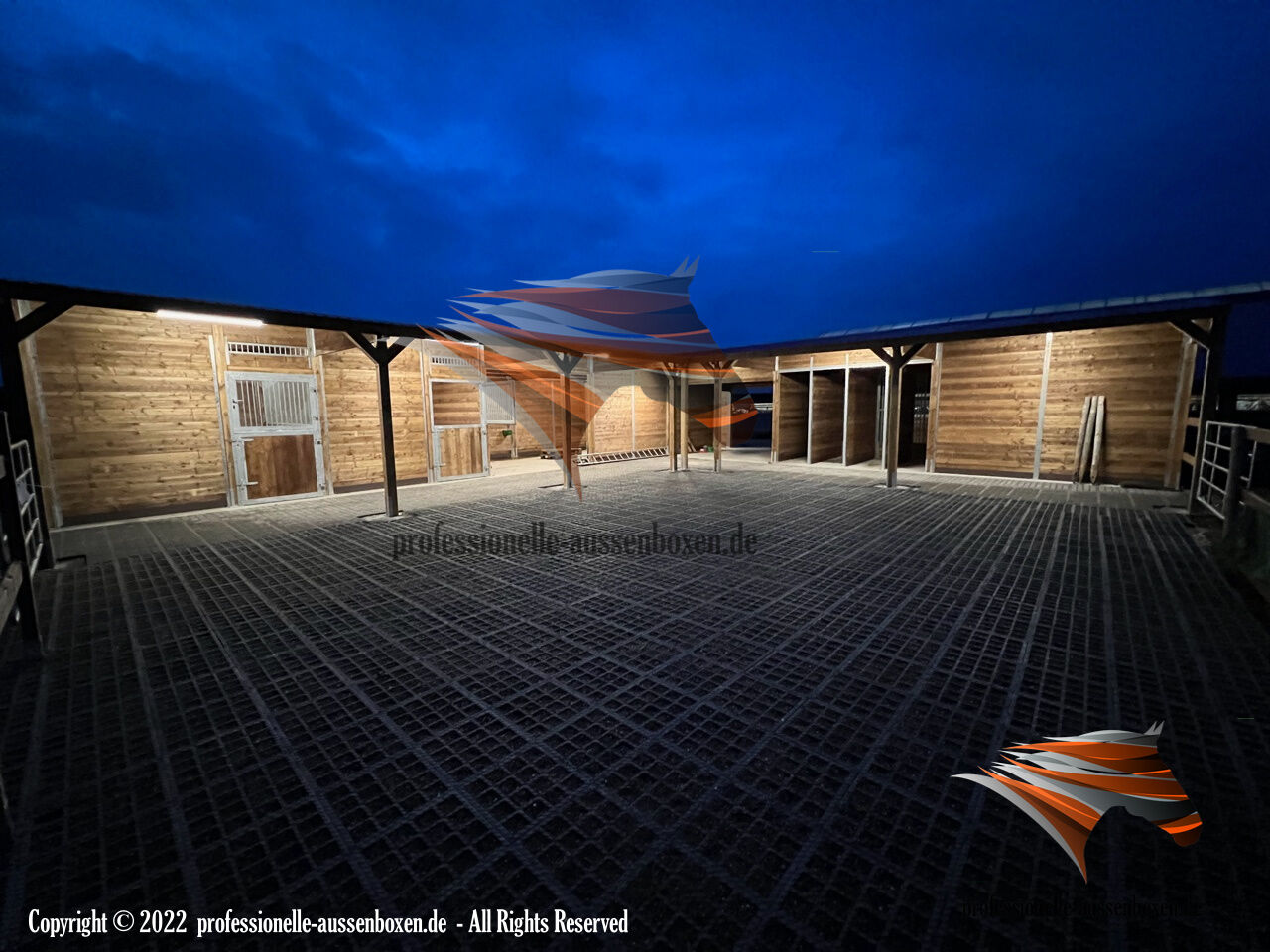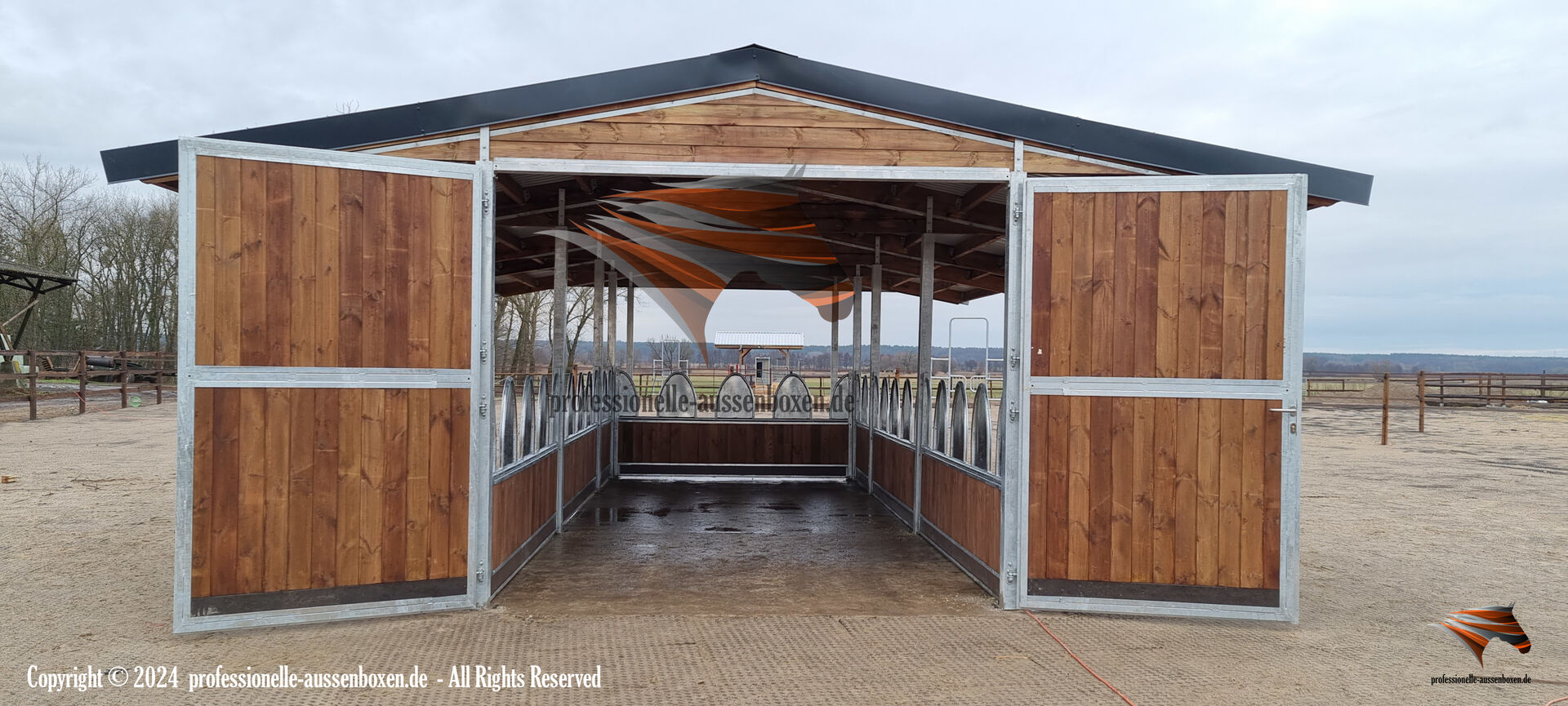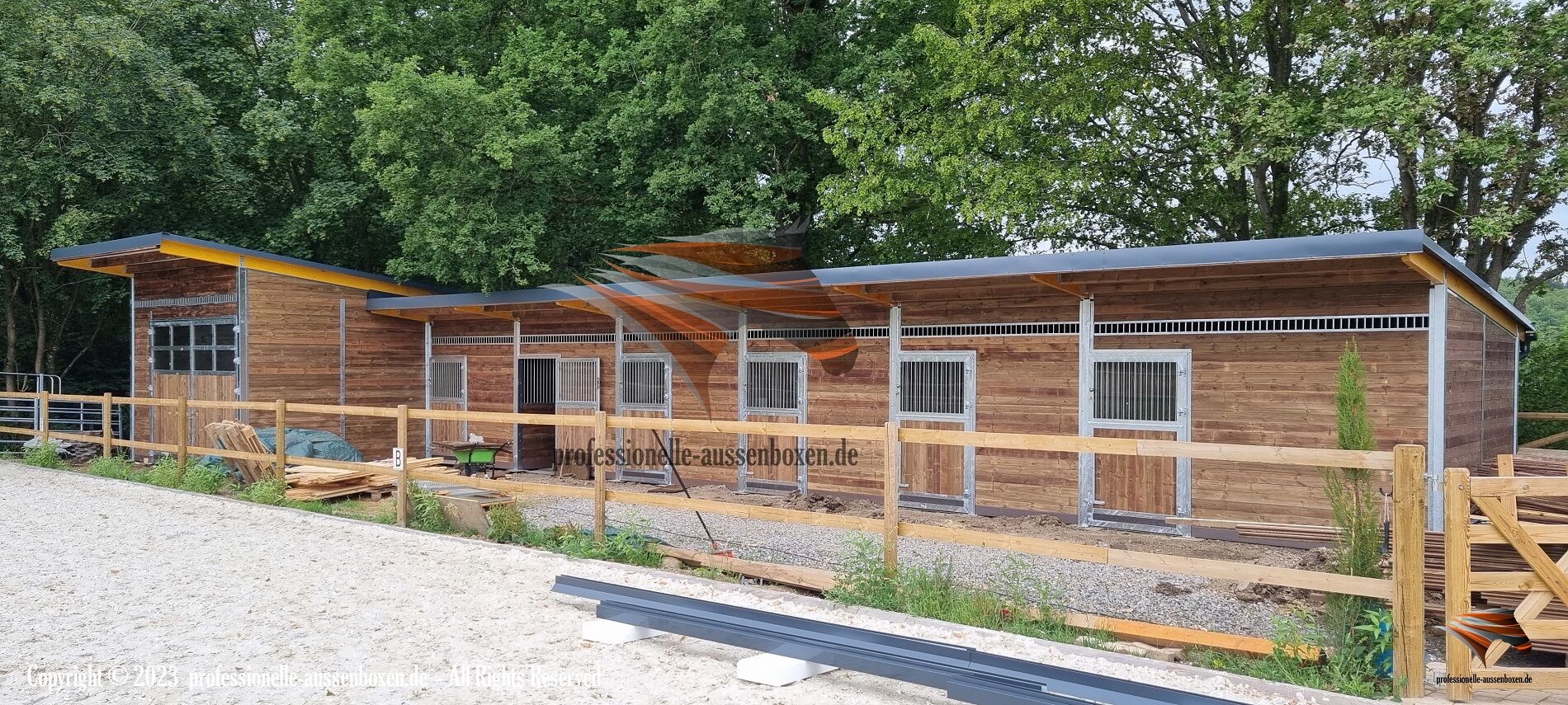 Bygga utomhusboxar & häststall och köpa öppet stall - Beteshage - Webb: www.professionelle-aussenboxen.de