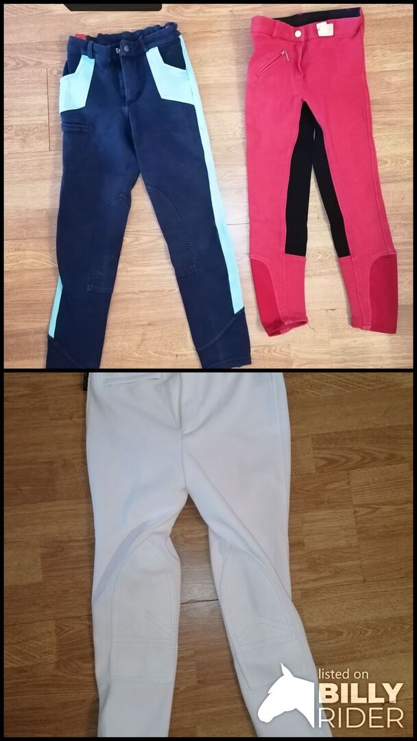 Byxor för barn, tävlingsbyxor, ridbyxor - Jag erbjuder 3 par byxor, tävlingsbyxorna är nya och oanvända. Pris per par byxor Frakt möjligt om kostnaderna täcks