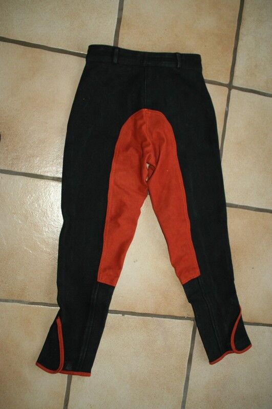Byxor med full sits orange svart storlek XS - Byxor i svart med orange-röd kant. Något urtvättad. Kardborreband fungerar. I övrigt inga skador.