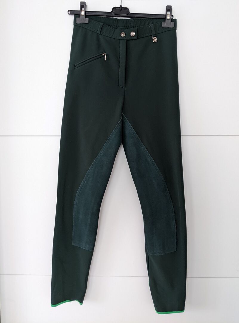 Jag säljer ett par knappt slitna Cavallo byxor i mörkgrönt med konstgjord mocka full sits. I mycket gott skick, inga skador eller slitage. Perfekt för fritid eller ridlektioner. Klassisk skärning med bältesöglor och maskintvättbar.