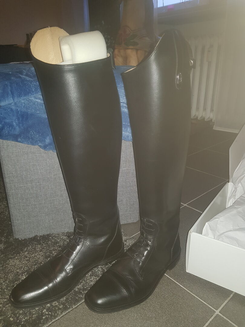Måtten kan ses på bilden. De levereras med ett par rosa stövelträd och en ny stövlarväska från Waldhausen i marinblått om det behövs.