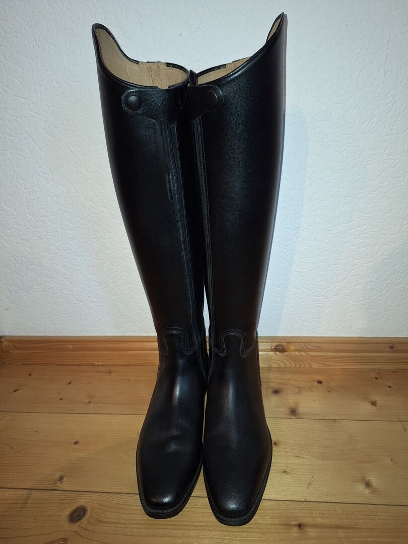 Jag säljer mina ridstövlar i läder i storlek 7 1/2, skafthöjd 50, skaftbredd 37. Ridstövlarna är som nya och oanvända, eftersom jag har slutat rida. Inga tecken på slitage. Högsta kvalitet. Priset är VB. Ursprungspriset var ca 500 euro.