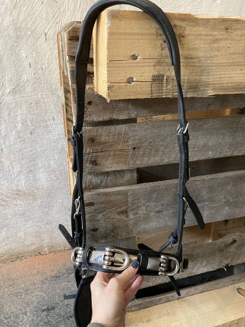 cavesson claridge house - säljer min mjuka tygel från claridge house/krämer som bara var 2x på hästen, har möjlighet att fästa biten, tyvärr gick en av läderöglorna på hakremmen sönder första gången jag satte på den (se bild), storlek wb