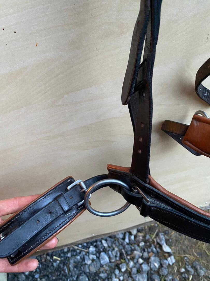 Cavesson från Solibel - Jag säljer en Solibel kavesson med tre ringar i mörkbrun färg. Den har ingen näsduk, storlek VB/WB. Den passade min häst bra och han är storlek COB/VB, men han gillar inte det bredare näsjärnet, så jag bytte.