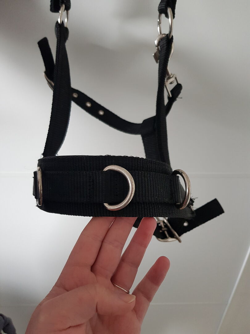 Cavesson till salu - Sälj kavesson med 3 öglor på nosen. Storleken kan justeras inom alla områden och är därför mycket flexibel. Vår häst har full storlek och den passade väldigt bra. Privat försäljning, ingen garanti.