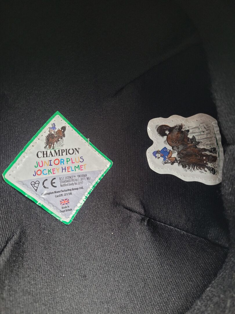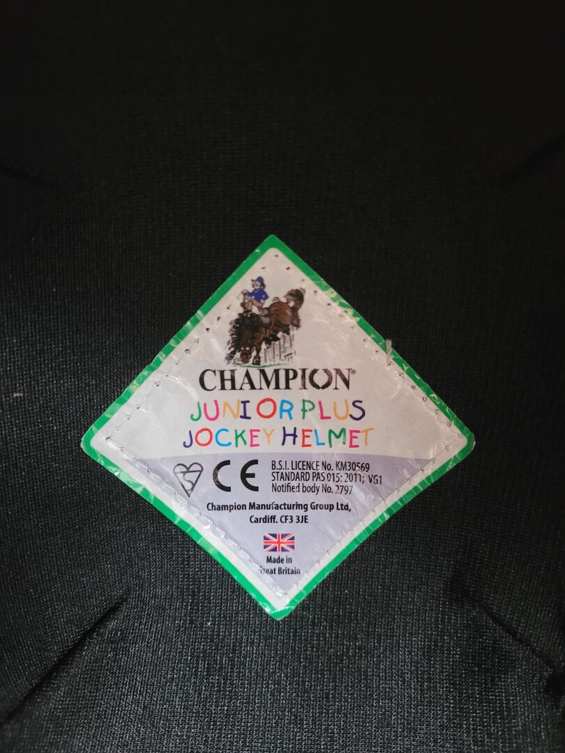Champion Junior Plus jockeyhjälm/skallskydd PAS015:2011 Storlek 51/6 1/4 /00 - Lämplig för barn 7-8 år, i bra skick. Jag använde den med hattöverdrag i siden.