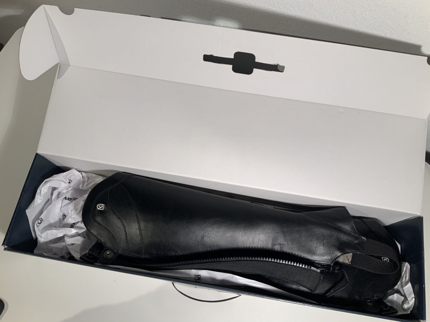Chap ny - Jag säljer mina helt nya svarta Cavallo chaps eftersom de är för små för mig. Storlek Skaft: 46 Kalv: 36