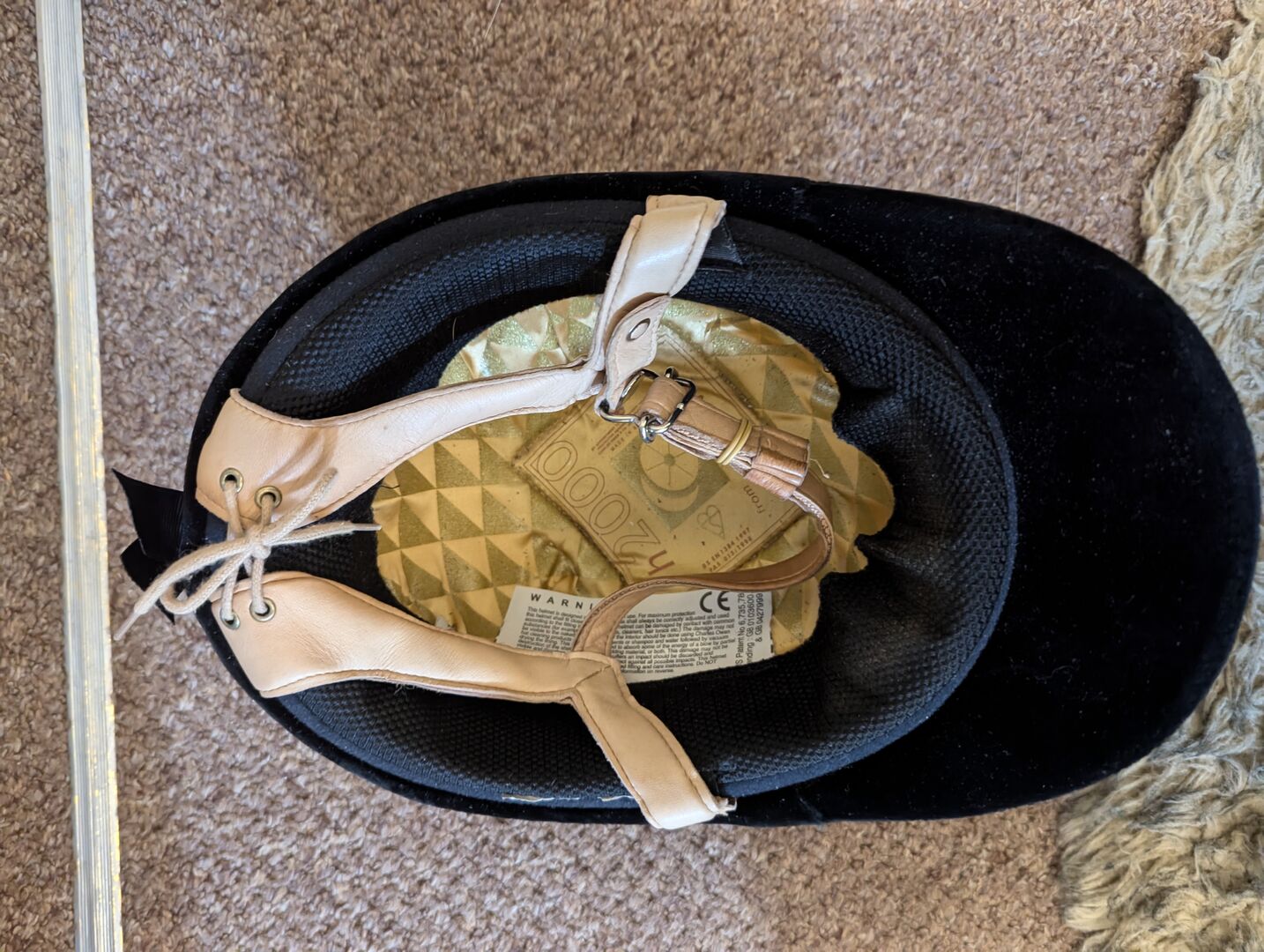 Black velvet Charles Owen hat size 55cm in excellent condition nude straps
