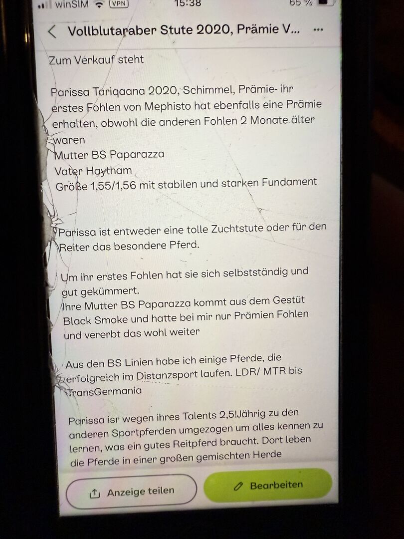 Moderstoet kommer från den välkända uppfödningen av Dr Nagel Fadern kommer från Black Smoke-studien. Några av BS-hästarna tävlar i långdistansområdet upp till Trans Germania