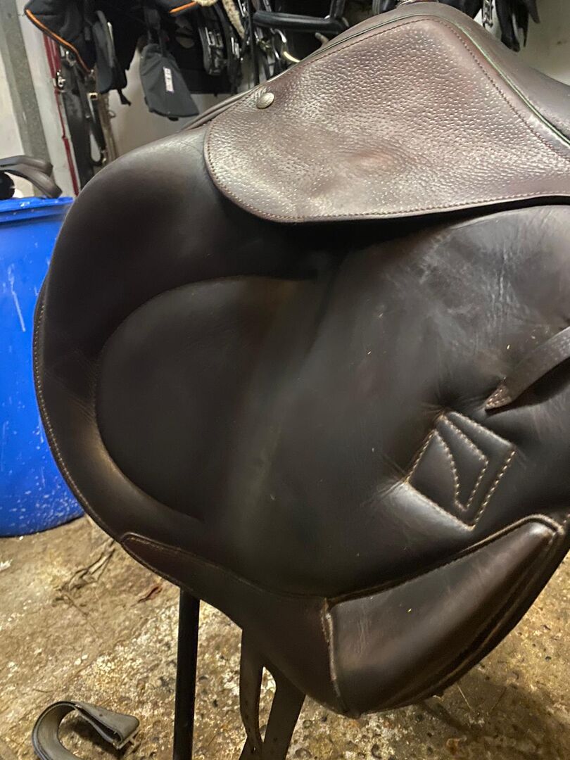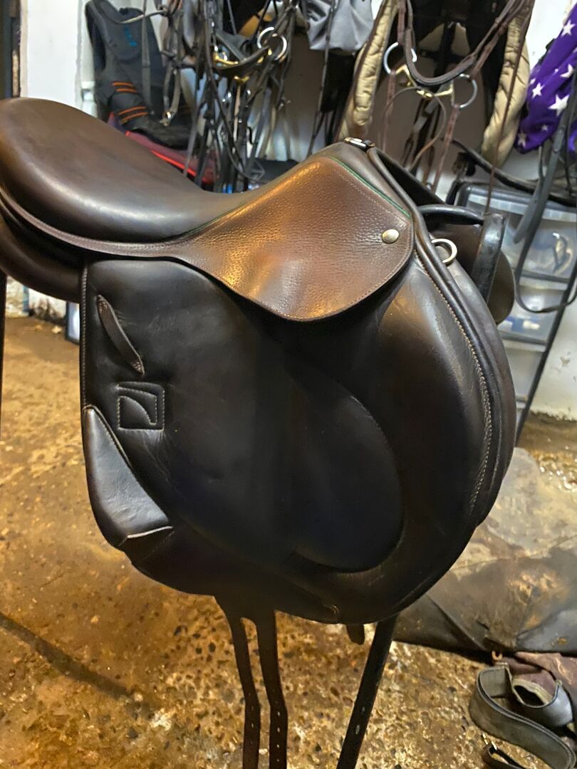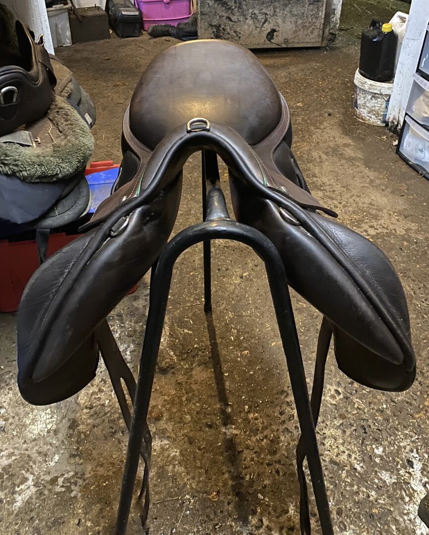 2C CFAP 17.5” Medium Wide width Cross-country jump saddle Monoflap, long girth straps Front & rear blocks Very comfortable and secure saddle in great condition, regularly cleaned and oiled. Comes with Childeric saddle cover Sad sale, no longer fits horse
