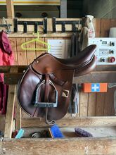 Childerig sadel för fälttävlan/hoppning - Jag säljer min Childerig France fälttävlan/hoppningssadel. Sadeln har små tecken på slitage men är i gott allmänt skick. Stigbyglarna ingår inte. Sadeln har använts med en sadelkudde i lammskinn. Den ägs för närvarande av ett 172 cm schweiziskt varmblodssto. Jag älskar sadeln, den är mycket bekväm för alla aktiviteter, oavsett om det är hobbydressyr, hoppning, terrängridning etc. Jag har underhållit sadeln med en sadelvård och hållit den i gott skick. Den har en rem upptill under ryttarens hand, perfekt för att fästa en karbinhake från en ridairbag. Sadeln kan också provridas på begäran. Plats: nära Fehraltorf För frågor vänligen skicka en Whatsapp till 079 882 61 11