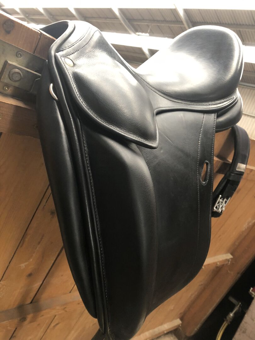 Jag säljer min fortfarande i gott skick Childéric dressyrsadel 17,5 tum.