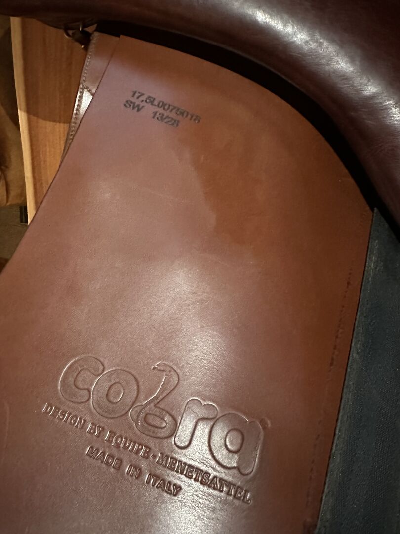 Cobra Pinerolo dressyrsadel 17,5 - Jag erbjuder en Cobra dressyrsadel, modell Pinerolo med duplicerat läder i brunt. För breda hästar 17,5 mycket bred och kort Används på en Haflinger och på ett tungt varmblod. SW18/28