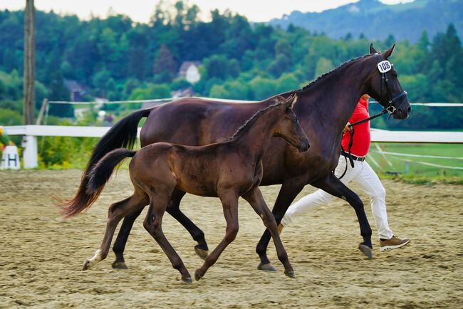 Unghästen imponerar redan med sin harmoniska exteriör, sitt fina uttryck och sina livliga, elastiska rörelser - de bästa förutsättningarna för sport och avel.