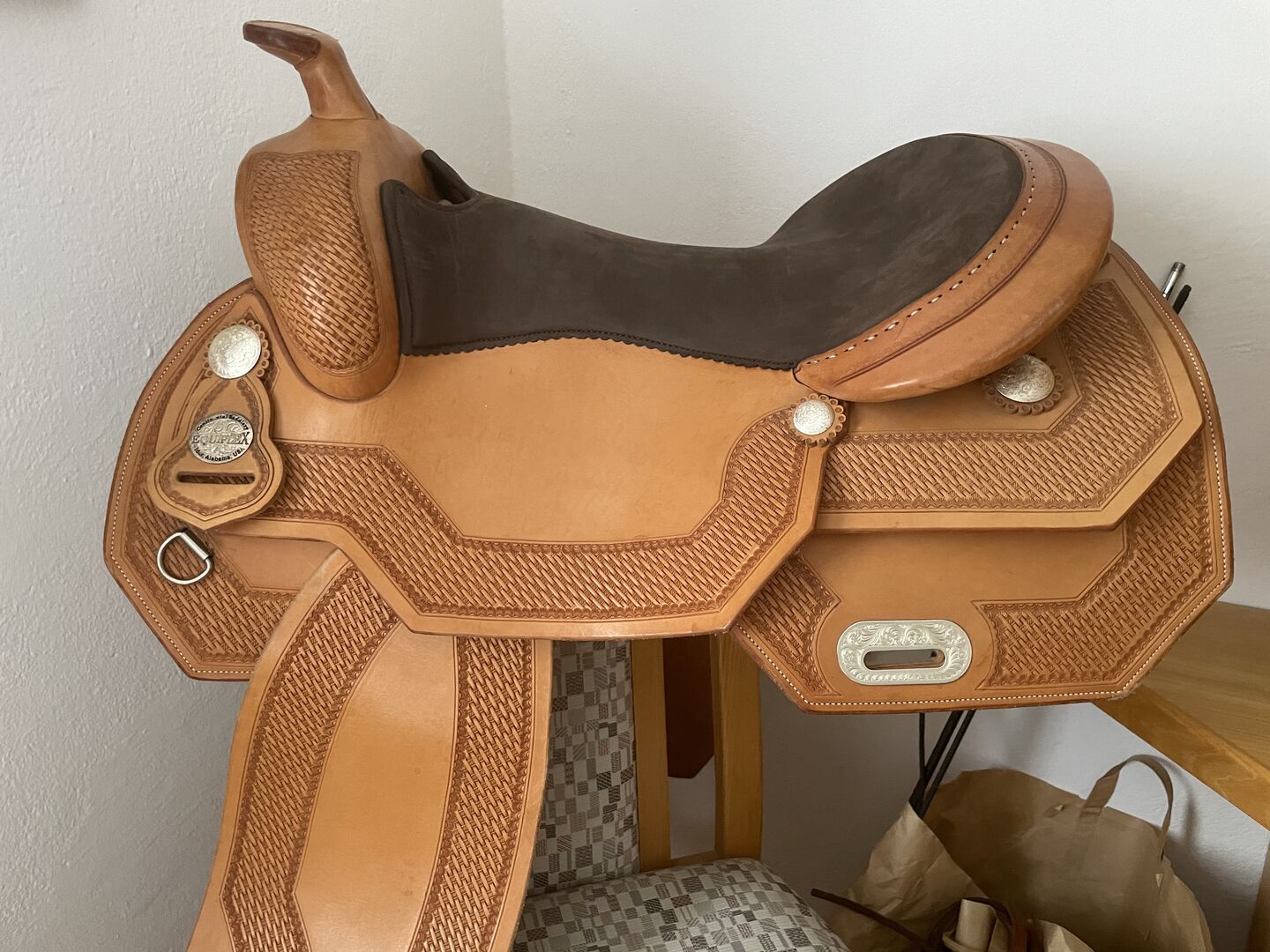 inkl. tillbehör - Så bra som ny Continental Alabama Equiflex Western Saddle till salu!