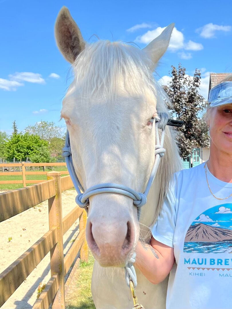 Cremello QH ung hingst med bra stamtavla - Plats: 15345 Rehfelde Letar du efter din framtida drömhäst? Oavsett om det är som en showhäst, som en fritidskompis eller för färgavel. Hollywood Snaps är öppen för allt. Hingsten är född 4.2022 och är 150 cm lång. Snaps har en korrekt exteriör. Han har blå ögon och en ljus champagne/cremello pälsfärg. Ett riktigt blickfång. Hingsten är vid perfekt hälsa och 5-panel n/n genom sina föräldrar. Snaps är mycket tillgiven, människoorienterad och väluppfostrad. Men han är också mycket smart och ivrig att lära sig. Hittills har han tränats på marken. Behöver hållas upptagen. Hingsten växte upp med boskap. Hans stamtavla är mycket bra: Snapper Cal Bar, Hollywood Jac 86 och Docs Hickory finns i hans stamtavla. På grund av ändrade omständigheter och en brådskande minskning av besättningen säljs han till fostrande händer. Placera före pris.