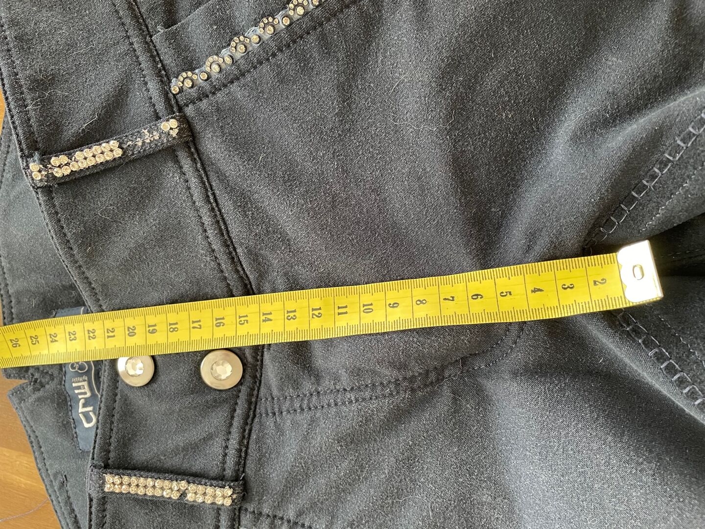CRW Classic Riding Ware Full Seat Breeches med strassdetaljer Blå Gr. 34 - Min dotter växer och därför passar byxorna från förra året inte längre. Alla byxorna har burits med en längd på 165 cm. Byxorna som erbjuds här har små brister i området med strassstenar och de har en liten fläck bredvid bården (se foton). I övrigt är de i mycket gott skick. Färgen är inte riktigt bra fångad på bilderna, den blå färgen är mycket fylligare och mörkare. Kanske kommer det att finnas en ny bärare av byxorna.