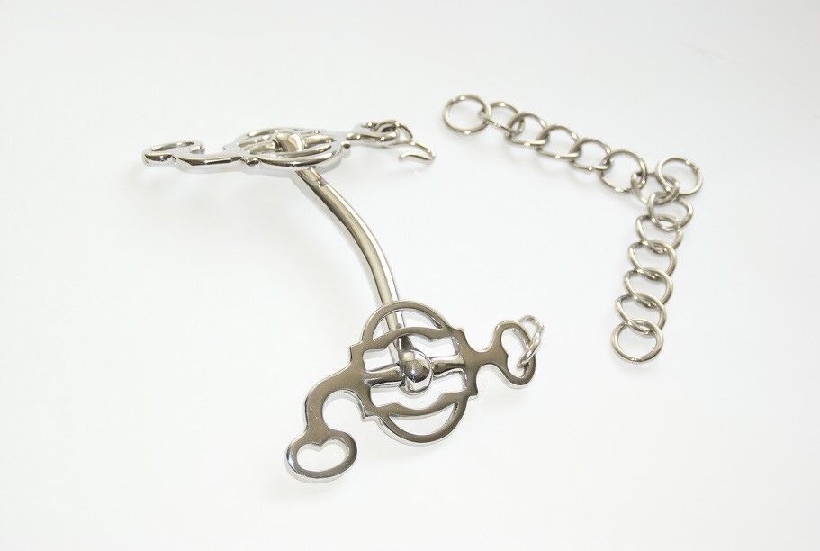Curb bit Friesenrose 13,5 cm - Anatomiskt utformat kandarbett av rostfritt stål. Rund räfflad undersida för att förhindra vassa tryckpunkter. Sidodel: stiliserad ros. Inkl. hakkedja.