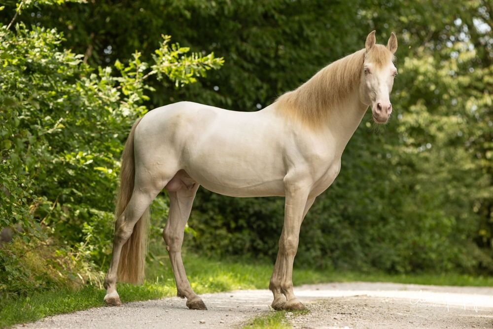 Curro har röntgats utan anmärkning. Hans stamtavla innehåller fyra "Calificado"-godkända och två "Mejorante"-godkända förfäder. Och allt detta kombinerat med genetik som gör alla färger möjliga - vad mer kan man önska sig? Han har fört vidare sitt mycket vackra huvud, en stark hals, en utpräglad muskulatur och talangen att samla till sina avkommor från 2023. Avkomman kan ses på de fem sista bilderna och kan naturligtvis ses på plats. Det är också möjligt att avla en Aztec från en parning med ett Paint- eller Quarter Horse-sto.