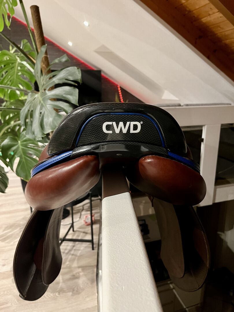 CWD 2G:s brun, 17,5, 2021 - Tyvärr, på grund av sjukdom hos hästen, måste jag skiljas från min helt bekväma och vackra CWD-hoppsadel från 2021 (mer information på bilderna). Han har 2 små quirks (mer information privat). Den satt på ett varmblod med högt vristparti.