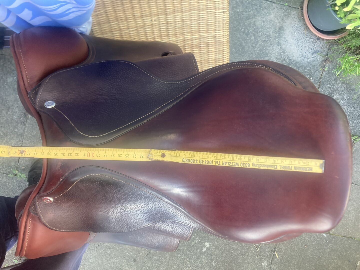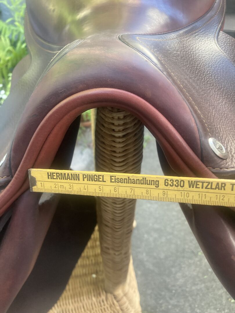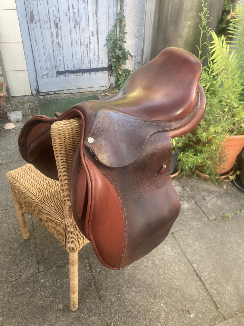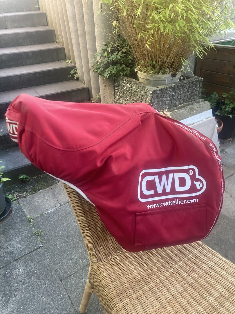 CWD Hoppsadel - CWD SE02 170 TR 3D - 17 tum - Vi säljer en väl underhållen, begagnad CWD-hoppsadel. Sadeln är en CWD SE02 hoppsadel med 17 tums sitsstorlek, tillverkad 2015. Den har en särskilt tättsittande sadelklaff med storlek 3 och ett extra framåtriktat snitt. Skumstoppningen har specialmodifierats med en anpassad panelkod (805) och extra mankavlastning (RG).
