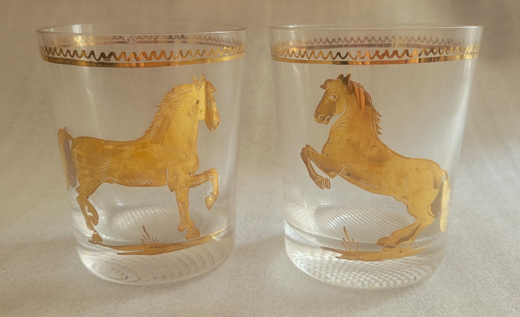 Dekorationer - Glasögon - Handmålade / guld - glas (2 st.) med hästmotiv
