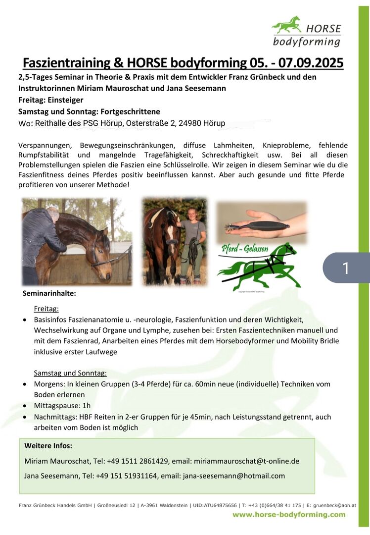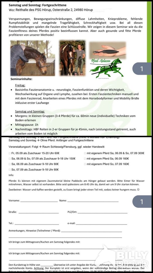 Hi Miriam , I am interested in your ad 'Die letzte Chance im Norden / HORSE bodyforming mit Franz Grünbeck Seminar'. Please contact me!