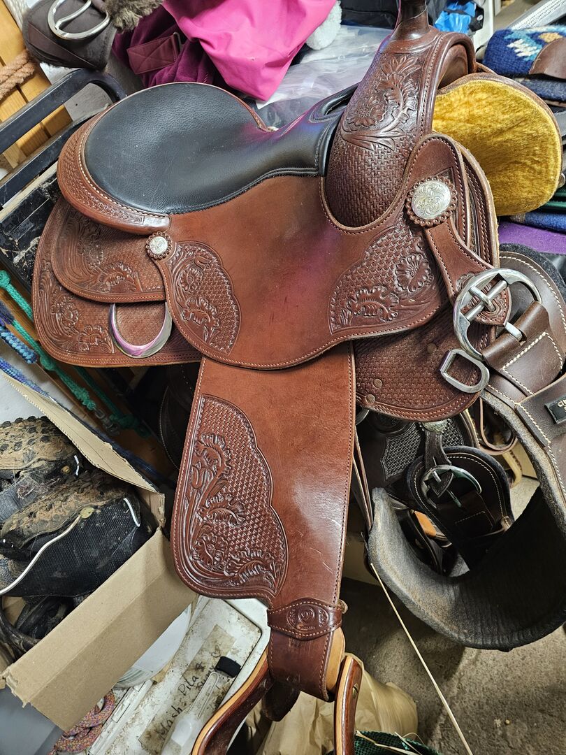 Deuber och Partner Western Saddle - Till salu knappt använt mycket bra skick 16 säten Träd för fullquater Mycket bekväm sadel Pendellängd M Frakt möjlig mot betalning Paypal tillgängligt