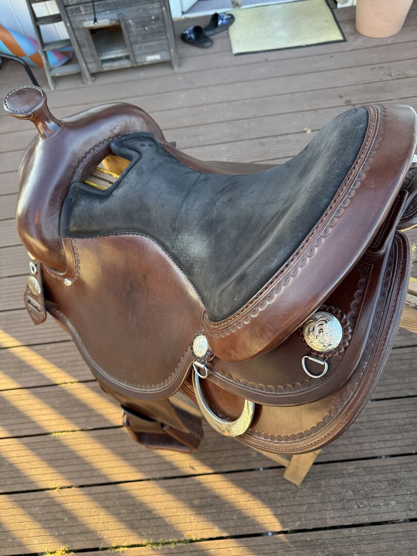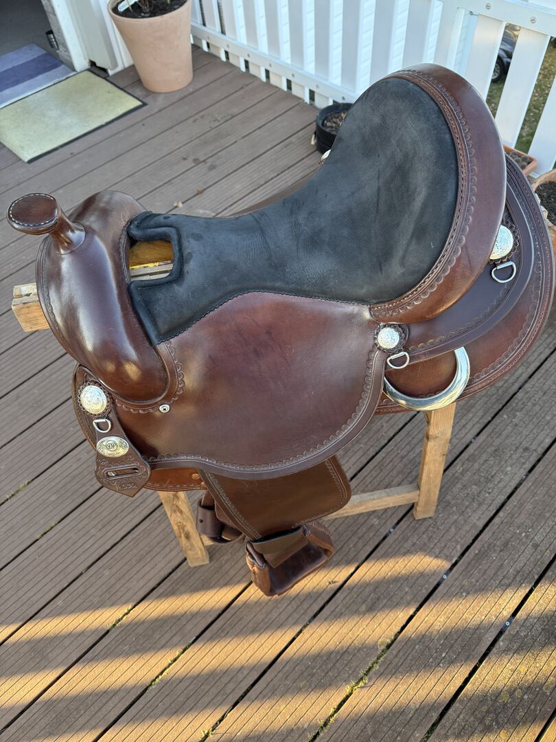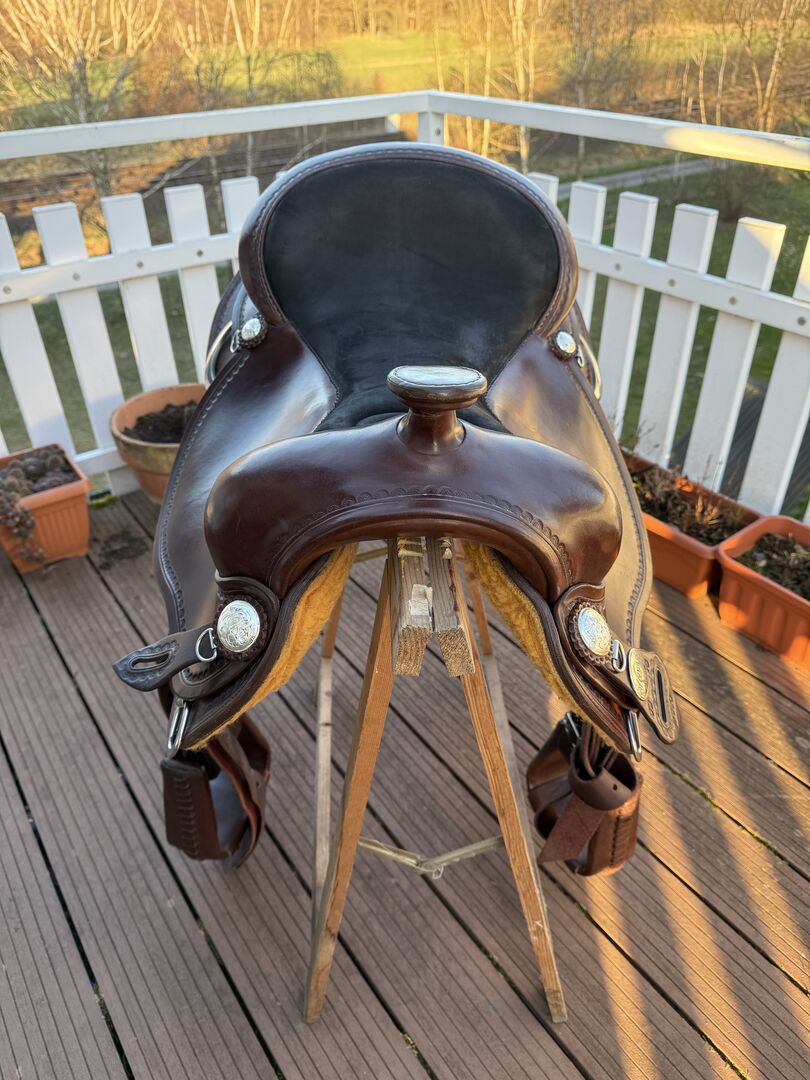 Så gott som ny🤠Olyckligtvis växte min unga valack ur den efter ett år ... Mycket trevlig och bekväm sadel eftersom sittytan är dubbel gepolstert❗️Kammer 03, för korta och breda hästar.