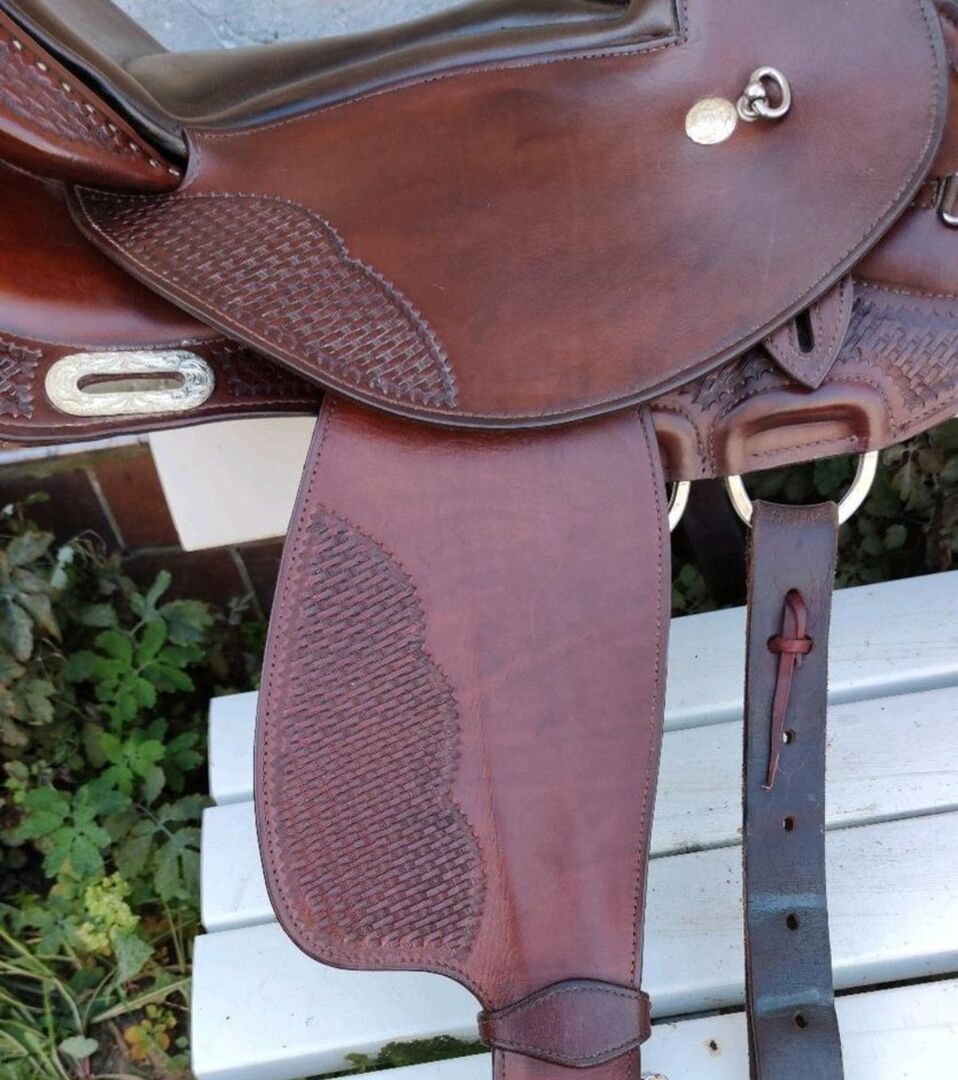 Leveransomfattning: sadel, westerngjord och stigbyglar för kalv/buckaroo från Bernd Hackel