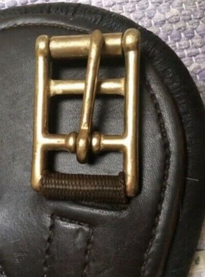 Deuber Saddle Girth Läder kort Girth Storlek 3 svart/mässing - Nyckeluppgifter: - Läder och stoppning: svart, slät - spännen: Mässing - Storlek: 3 , 75 cm - Skick: mycket bra (sällan använt och väl underhållet). - Ursprungligt pris: 138 € - plus frakt