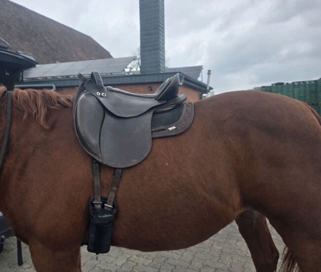 Här erbjuder jag en välbevarad Deuber Startrekk-sadel. Denna mångsidiga hästsadel är idealisk för olika ridstilar och ger dig en säker och bekväm ridupplevelse.