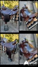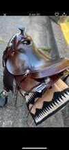 Deuber Trailrider 1031 mycket kort 02 Quarterhorse - Säljer min Deuber Trailrider. Kammarens bredd 02 Quarterhorse Sits storlek 16 Mycket kort endast 60 cm total längd Klassisk linje Trädet nummer 1031 från Deuber är installerat Trä täckt med råhud 6 läder conchas. Jag har lagt till ytterligare conchas på den C-ring i kjol på 7/8 position Begagnad men inga defekter. ‼️Die Elastostep stigbyglar är inte dabei‼️. De ursprungliga Deuber trä stigbyglarna kommer att skickas. Ingen sändning på rättegång. Frakt med DHL-paket 19,99 euro