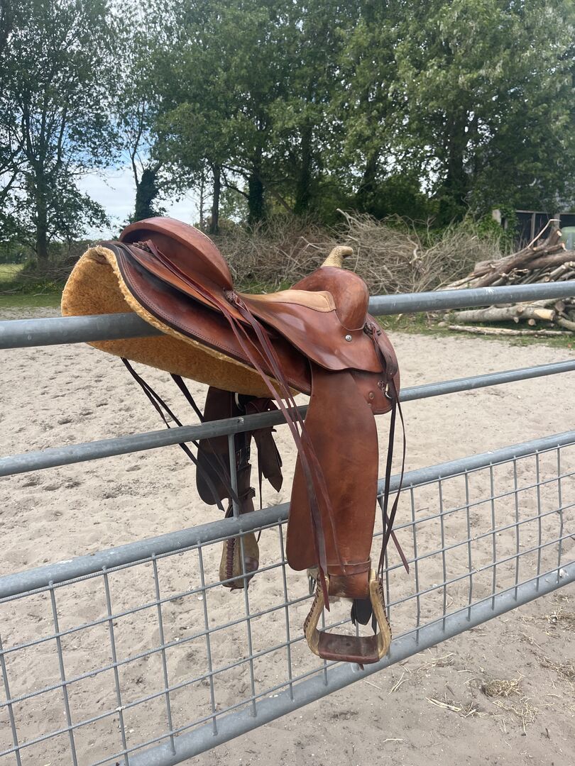 Deuber western sadel - Begagnad Deuber western sadel. Lädret har vissa spår av användning, men sadel och träd är i mycket gott skick. Denna sadel kommer fortfarande att hålla många många år. Jag köpte den här sadeln begagnad från en sadelmontör som har kontrollerat sadeln på eventuella standardvärden.