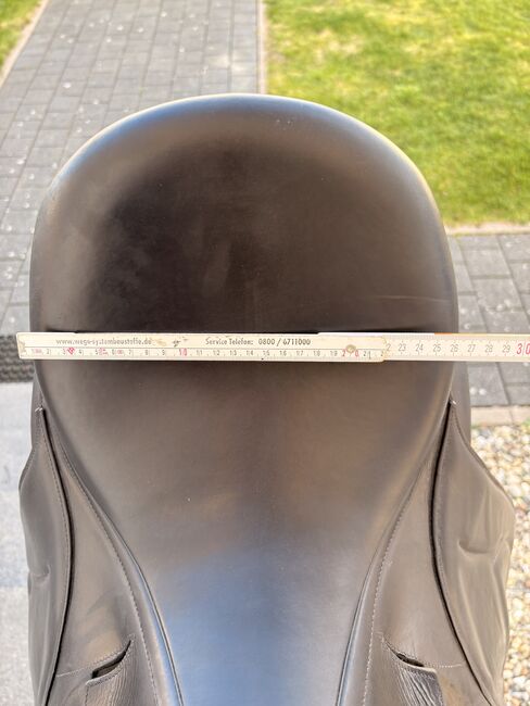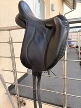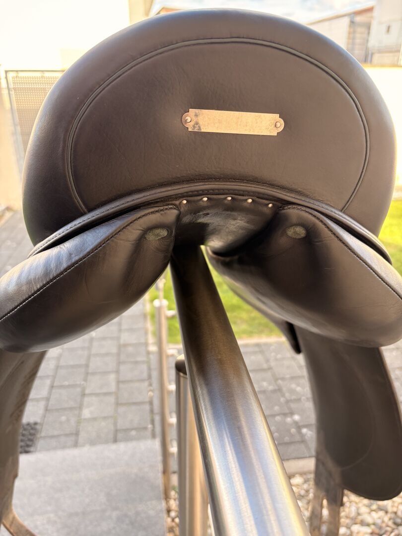 Sadeln tillverkades 2018 och är i ett välskött skick. Tillverkad av fint svart buffelskinn, erbjuder det särskilt bra stöd och ett mycket bekvämt säte. Makila Lab-modellen är känd för sin närhet till hästen och sin ergonomiska passform - perfekt för ambitiösa dressyrryttare.